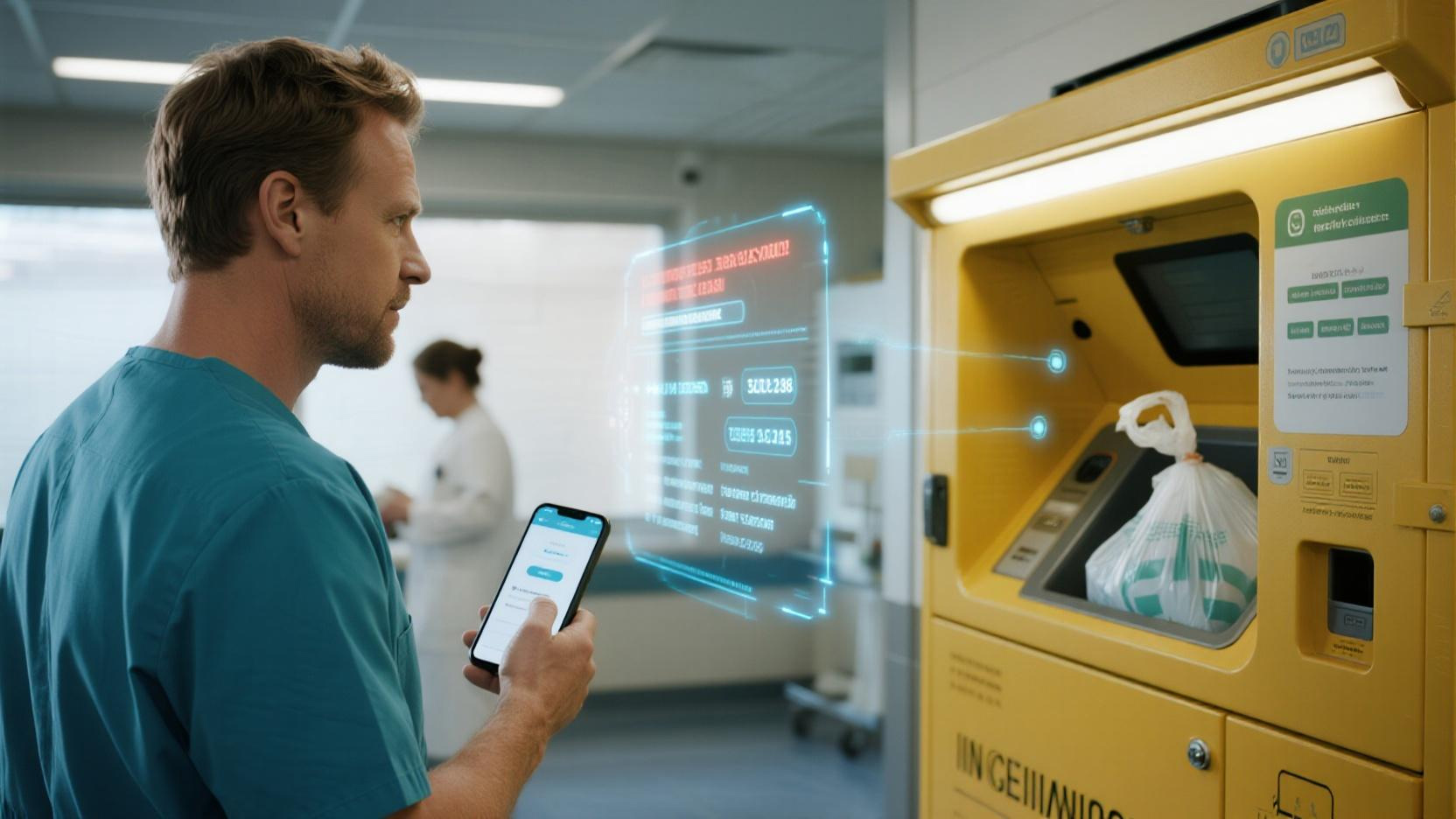 Based on AI image recognition technology, real-time monitoring of medical waste disposal, automatic identification of abnormalities and warnings, improving safety.