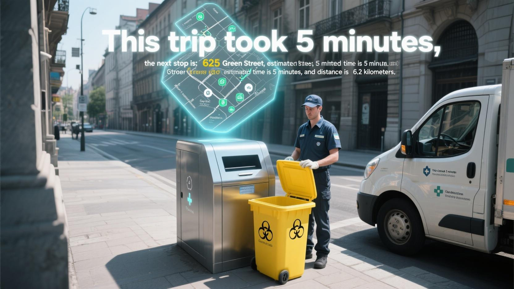 Smart bins cover a 3-kilometer radius for medical waste collection, allowing flexible and controllable clinic disposal times, reducing collection points by at least 90%, and saving transportation mileage.